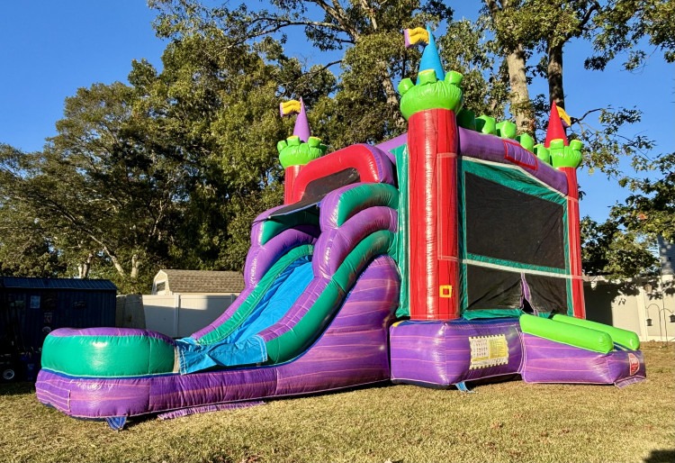 The King Castle Bounce House Combo (Wet or Dry) A all-in-one inflatable that pairs a spacious bounce area with a built-in slide and castle-style accents to turn any gathering into a storybook adventure. Its easy-access entrance and roomy interior let kids jump, tumble, and race safely, while mesh windows provide clear sight lines and airflow so adults can supervise comfortably. Bright, throne-ready colors and turret details make it a festive centerpiece for birthdays, school functions, church events, or neighborhood parties. Built from rugged vinyl with reinforced seams, this combo stands up to repeated use, and its contained layout keeps active play focused in one supervised area. Switch between wet and dry configurations to suit the weather and the crowd: as a dry unit it’s an energetic play zone; as a wet unit it becomes a cooling slide and splash option for hot days. A versatile, durable choice that delivers both entertainment and eye-catching decor to celebrations.